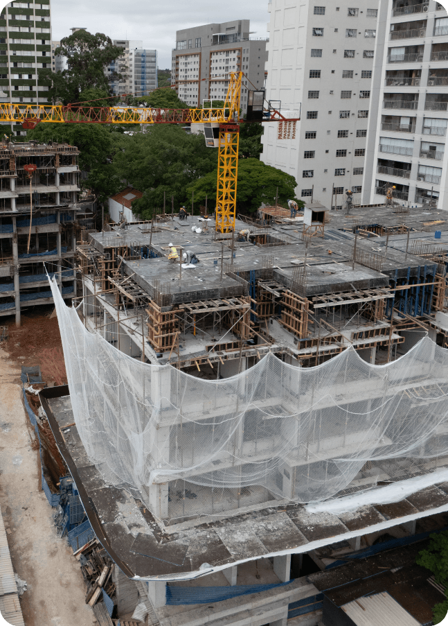 Para superar desafios como travessas, lajes de encontro e paredes de concreto armado, foram aplicadas soluções completas: escoramentos estáveis, fôrmas robustas e de alta precisão, além de vigas de alumínio que trouxeram leveza e praticidade ao canteiro. A integração dos sistemas otimizou tempo e recursos, garantindo produtividade e segurança em cada fase.